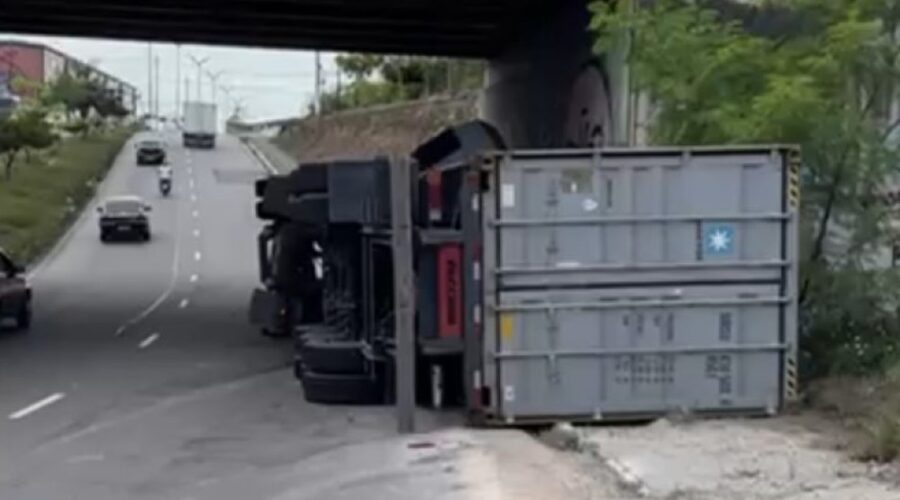 Um acidente envolvendo uma carreta causou transtornos na manhã desta quarta-feira (23), na Avenida Max Teixeira, próximo ao entroncamento com a Avenida Torquato Tapajós, na Zona Norte de Manaus. O veículo tombou no sentido bairro, provocando o derramamento de uma grande quantidade de óleo sobre a pista e comprometendo o fluxo do trânsito na região.