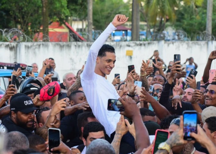 Cantor Oruam deixa cadeia no Rio de Janeiro e é recebido com festa por admiradores