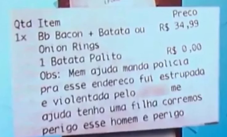 Na mensagem, a vítima escreveu: “Me ajuda, manda polícia pra esse endereço, fui estuprada e violentada (…) me ajuda, tenho uma filha, corremos perigo, esse homem é perigoso”.