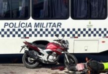 Pai e filha ficam feridos em colisão entre moto e ônibus da PM no...