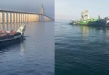 Empurrador naufraga próximo à Ponte Phelippe Daou e cena viraliza nas redes sociais em...