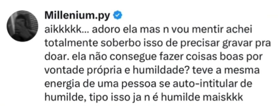A atitude foi criticada nas redes sociais e alguns perfis compartilharam as postagens feitas com as críticas. A influencer não gostou e postou um vídeo reagindo aos comentários.