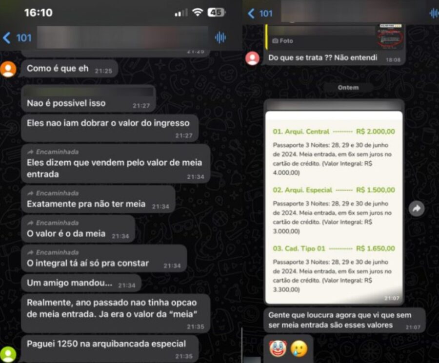 Um dos torcedores, denunciou que a Amazon Best divulgou, na verdade, os valores dos ingressos todos “como meia-entrada”. Isto porque o ingresso da arquibancada central, que está R$ 2 mil, na verdade, custa R$ 4 mil a inteira. “Gente que loucura, agora que vi que na verdade os valores são esses”, reclama o internauta, que afirma que falta transparência na hora da compra dos passaportes. Confira: