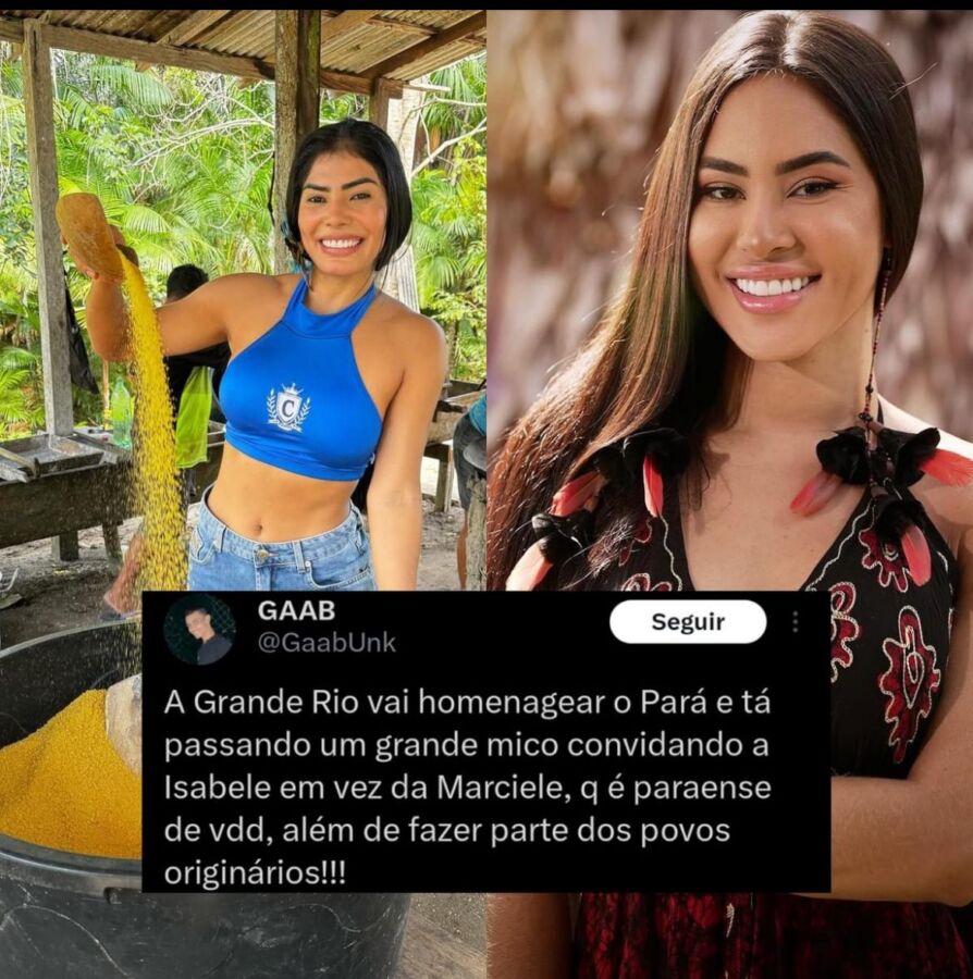 A escola de samba em 2025 fará uma homenagem ao estado do Pará, trazendo para a Sapucaí do estado paraense. No entanto, Isabelle Nogueira é de Manaus, já Marcielle Albuquerque é natural do Pará. Por isso, muitos Internautas comentaram a decisão nas redes sociais, em uma publicação, um internauta escreveu: “Grande Rio tá passando um grande mico convidando Isabelle Nogueira em vez da Marcielle que é paraense”.