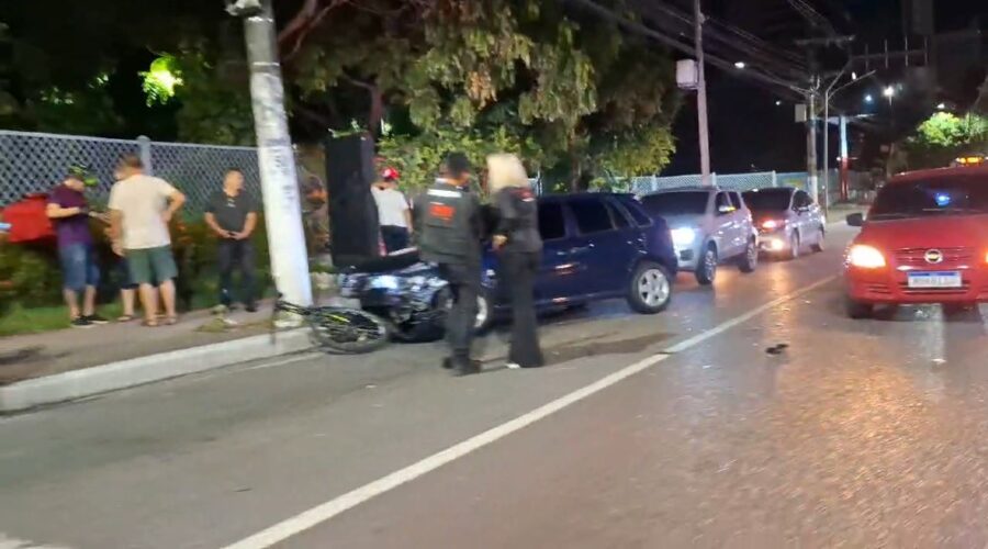 Um acidente envolvendo um entregador e um carro modelo Gol foi registrado na noite de quarta-feira (4) na Avenida Djalma Batista, Zona Centro-Sul de Manaus. A colisão aconteceu após o veículo apresentar uma pane mecânica e atingir a bicicleta conduzida por Wellington Santos, que pedalava pela lateral da pista.