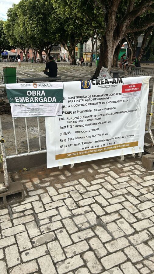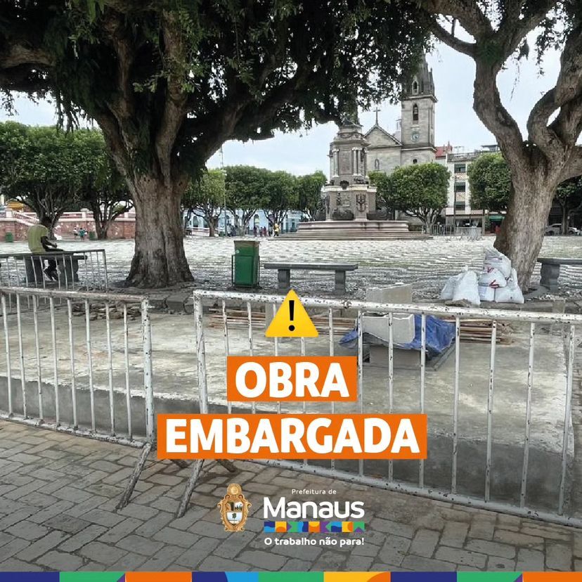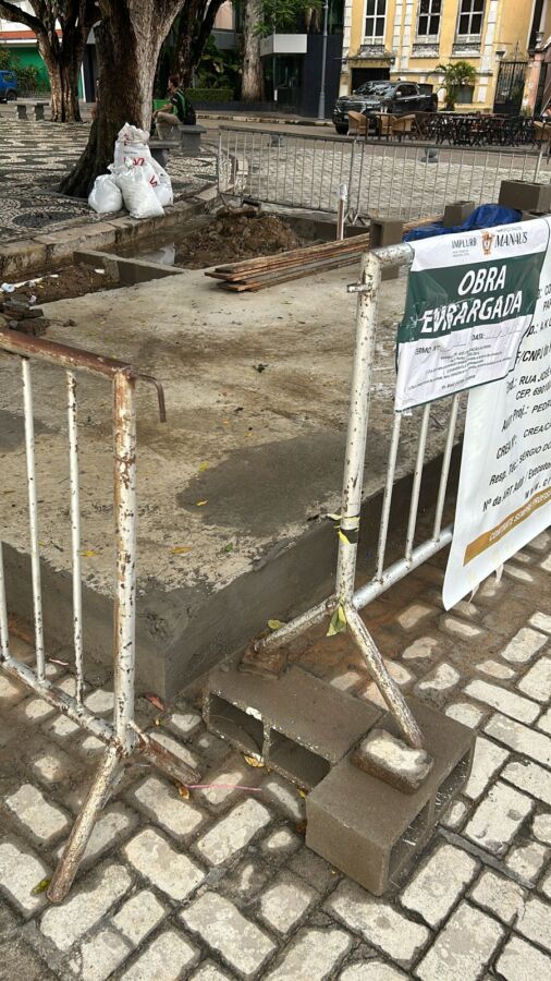 Em ação rápida nesta segunda-feira (11), a Prefeitura de Manaus, via Implurb, notificou e embargou uma obra no largo de São Sebastião, após receber denúncia sobre a irregularidade. Sem licença ou autorização para qualquer intervenção no local, a obra foi embargada também pelo Instituto do Patrimônio Histórico e Artístico Nacional no Amazonas (Iphan).