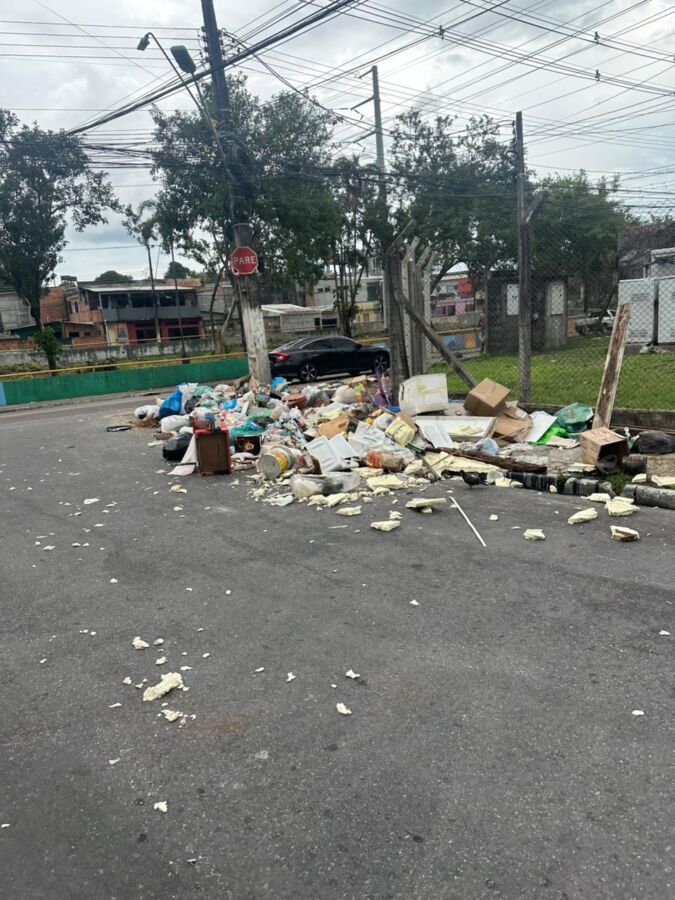 No Lago Azul, Zona Norte, o lixo ficou acumulado por cinco dias, transformando a área em um lixão. Moradores registraram a situação e, após várias reclamações, uma equipe foi enviada ao local.