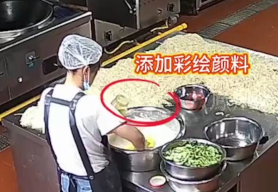 Segundo a polícia, o diretor da escola orientou a equipe da cozinha a usar uma tinta identificada como não comestível. Câmeras de segurança exibidas pela mídia estatal mostram funcionários misturando o pigmento à massa usada na alimentação.