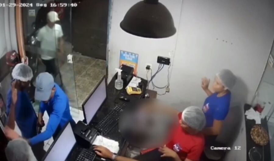 [Vídeo]: Bandidos invadem pizzaria, rendem funcionários e levam tudo durante assalto em Manaus